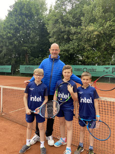 Junioren U12 rechts im Bild inkl. Vereinstrainer Klaus Sures konnten das erste Saisonspiel gegen die Mannschaft vom Huckarder TC 77 1 souverän mit 3:0 gewinne und sind bereit für die nächsten drei Spiele.