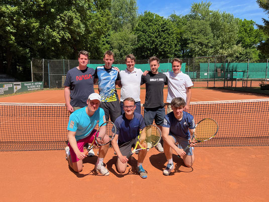Zum Ende ihrer 1. Ligasaison können Mats Keuter, Jacob Kläsener und Casimir Kleine-Wienforth mit Recht sagen " Wer friert uns diesen Moment ein?". Den Moment des verwandelten Matchballes - das Bewusstsein, sich durchgesetzt zu haben. Auch am letzten Spieltag beim TC Hohenstein Witten gingen sie als deutliche Sieger (3:0) vom Platz und verteidigten souverän die Tabellenspitze. Unterstützt wurde die Mannschaft unter anderem von Dr. Uwe Westerdorf. Herzlichen Glückwunsch zum ersten Tabellenplatz in der ersten Saison!